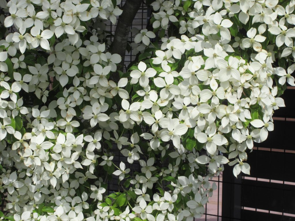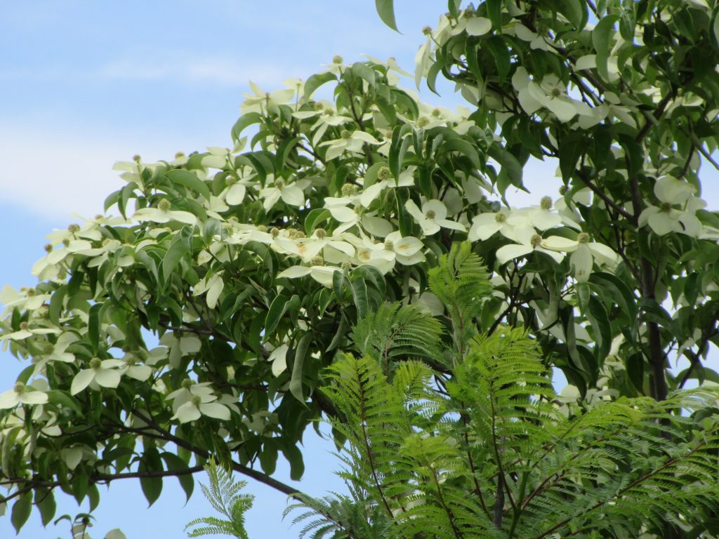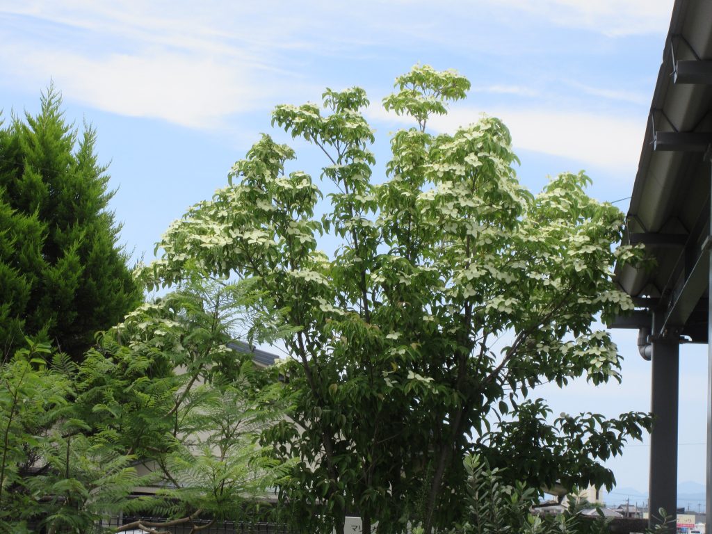園庭の2本の白い綺麗な花が咲く木の事を今まで「ハナミズキ」と思っていましたら、なんと、それは「ハナミズキ」ではなく「ヤマボウシ」という花だという事が判明しました。