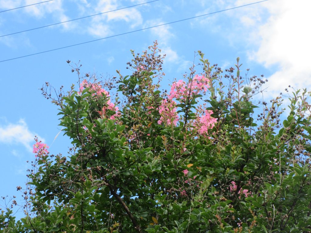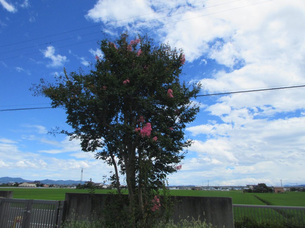よそよりも遅咲きの、園庭玄関の「百日紅」がようやく綺麗に咲き始めました。