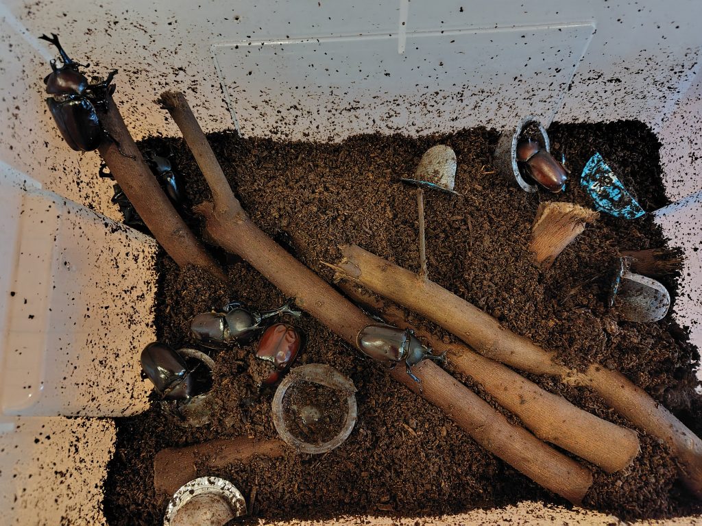 先日「カブトムシ」のご寄付をくださった方が、またまた26匹ご持参くださいました。