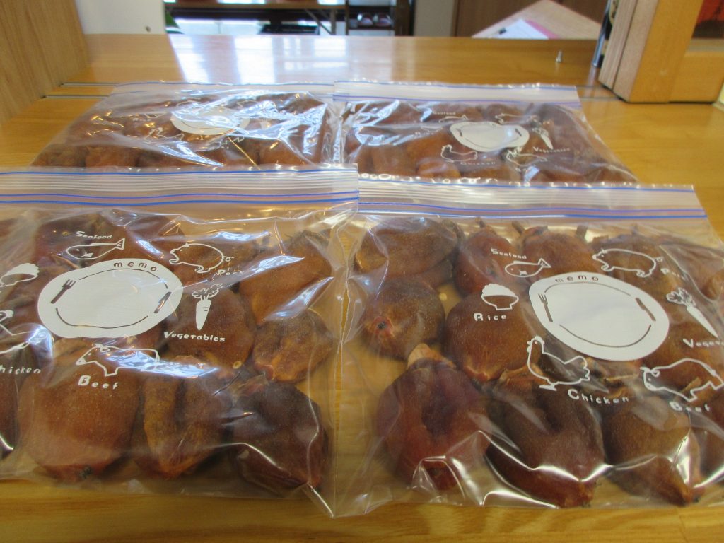 1本目の柿の木の干し柿が出来上がりました。柔らかいうちに冷凍庫に入れます。