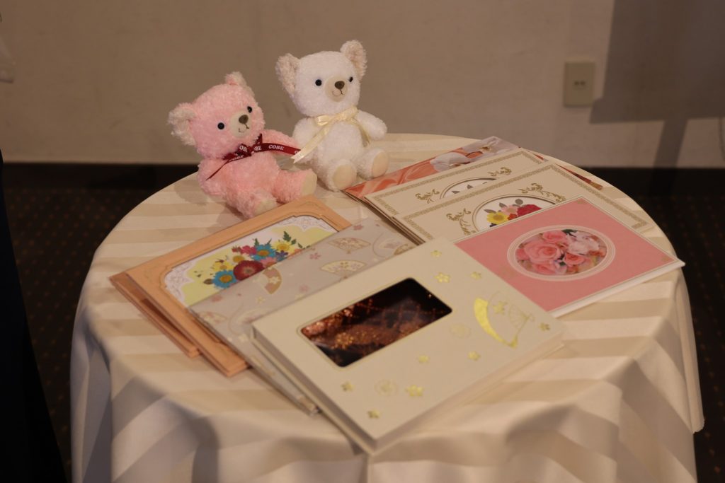当日は、みな様から沢山の綺麗なお花や電報も頂きました。