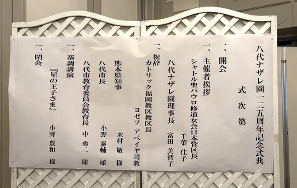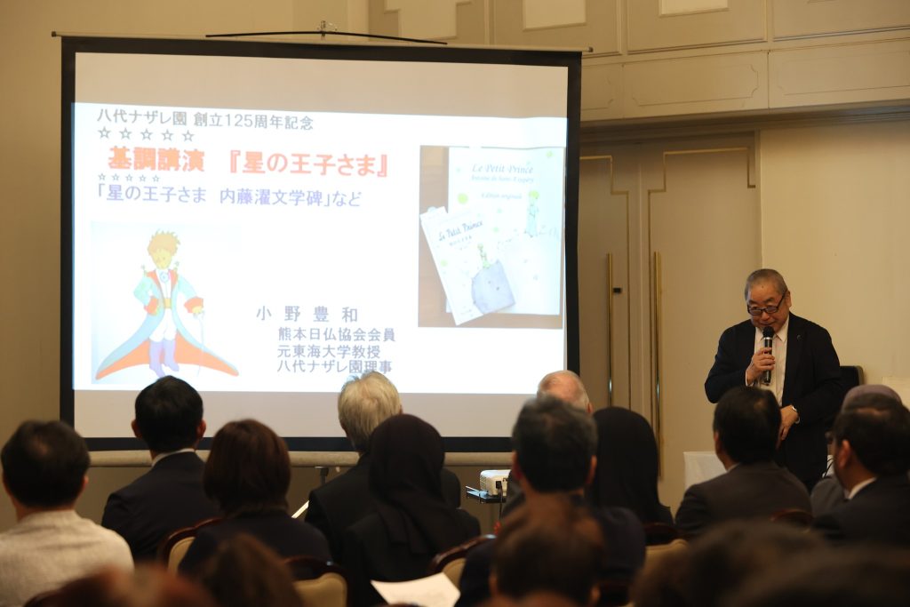 第一部の式典では司会者の高野さんの司会で、司式通りの、主催者挨拶、来賓の方の祝辞、そして、記念品として皆様の袋にお入れした小さな1冊の本、「星の王子さま」についての小野豊和さんのスクリーンを使っての「基調講演」でした。