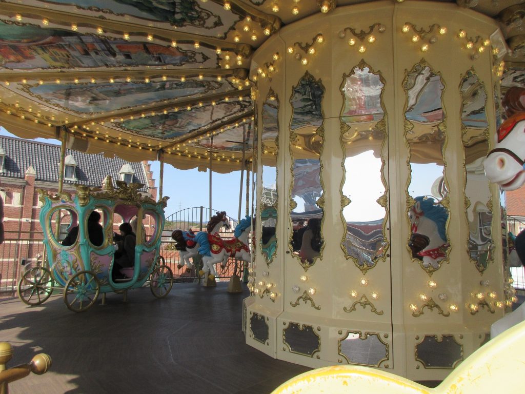 最後に日本で唯一と言われる「3階建てのメーリーゴーランド」の3階に乗り、廻る中で八代ナザレ園の子どもが出口の方向へ歩いていくのを見つけたりして、我々も降りてから出口へと向かいました。